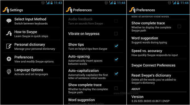 For example, you still can’t double tap on the space key to insert a period, something that almost every other keypad does now. In the SMS view, there is no way to insert a new line into your message (as can be seen above), something that the default Android keypad cannot do either (but SwiftKey can). Also, if you choose to manually enter text instead of swiping, you’ll notice that the space bar is too small, and that the keys on the bottom, such as for voice input cannot be disabled. ICS also has its own drop down list of suggestions for misspelled words, which now overlaps that offered by Swype.